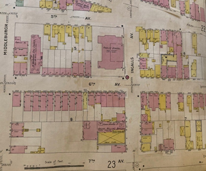 I’d always assumed that Freihofer’s was the first big bakery in my city, but in the maps, I found a thriving realm of commercial baking, ranging from corner shops to plants that covered half blocks and whole blocks. Wagons and sheds showed me that these bakeries delivered, too — something that in local lore is only linked to Freihofer’s.